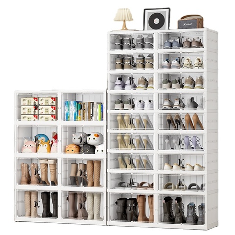 Scatole di scarpe in plastica per scatola di immagazzinaggio per borse anteriori in acrilico con display trasparente personalizzato organizer impilabile